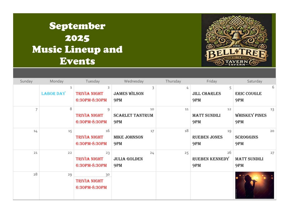 The Bell Tree is family-friendly during the day and early evening. However, as the night progresses and live music starts, it becomes a more adult-oriented environment. Valid ID is required for all alcohol purchases.