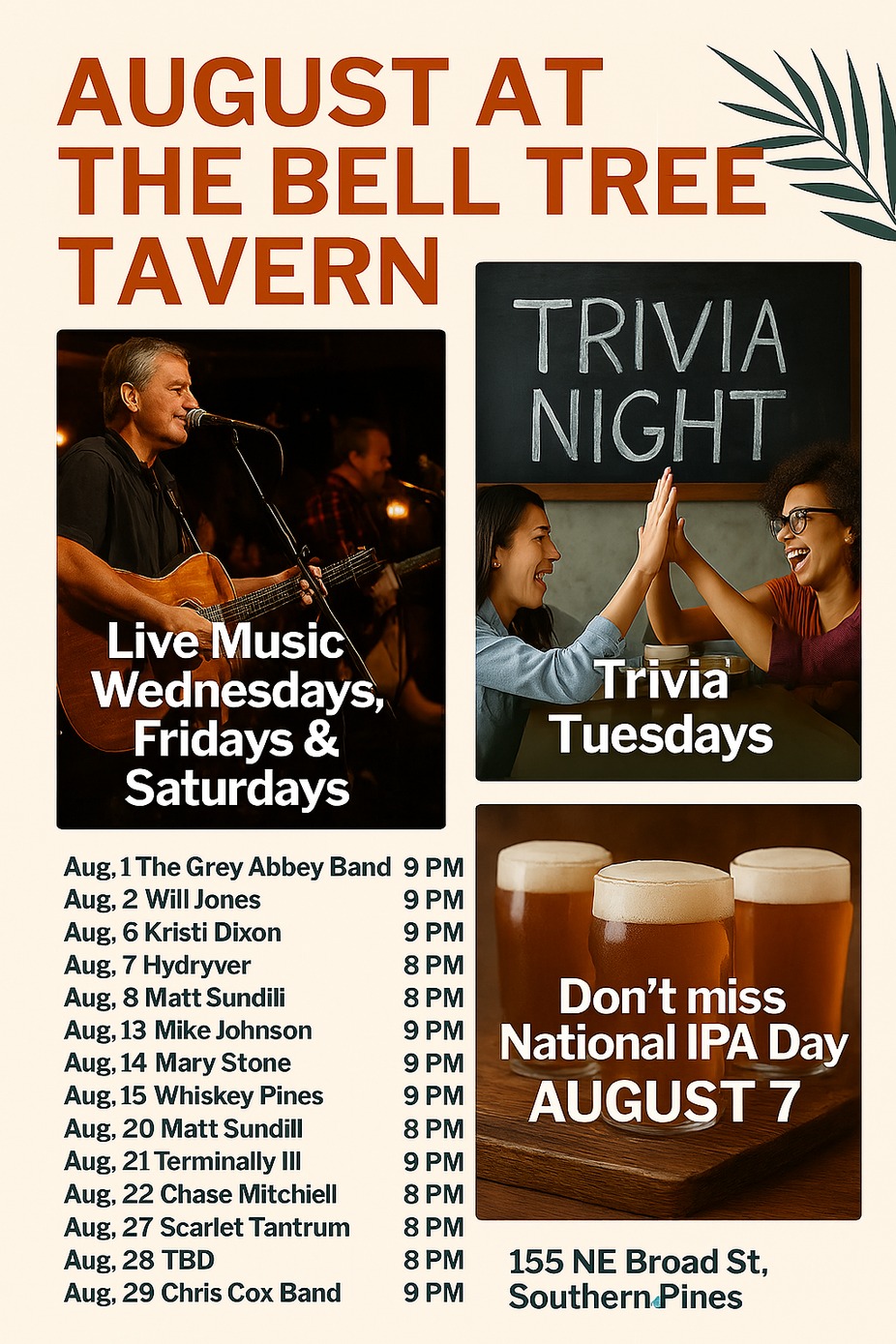 Join us at The Bell Tree Tavern — the heartbeat of Southern Pines — for local flavors, great drinks, and even better company.